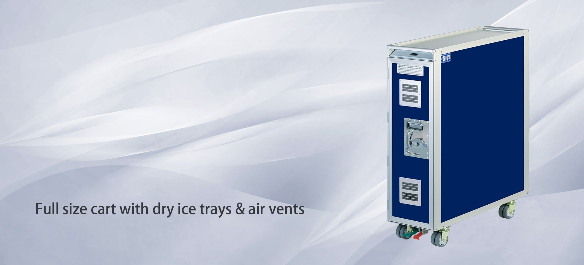 The full size airline food trolley carts with reduced weight are made of high-grade aluminum alloy extrusions and sheets, stainless steel hardware with approved insulation foams which meet all fire property requirements.